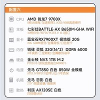 蓝宝石AMD锐龙 9700X主机 RX9070XT/RX7900XT/RX7800XT组装电脑 电竞游戏直播AI设计渲染DIY台式组装机 配置6 9700X/RX7900XT/32G