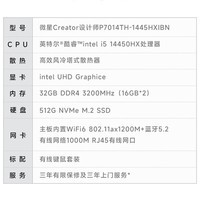 微星设计师P70十四代酷睿版办公台式机白色款是一款性能出色的办公利器。它搭载酷睿i5 - 14450HX处理器,配备32GB内存和512GB SSD固态硬盘,采用核芯显卡。这种配置组合能够轻松应对日常办公中的各种任务,如文档处理、表格制作、多任务运行等,同时也能满足一些轻度图形处理需求。