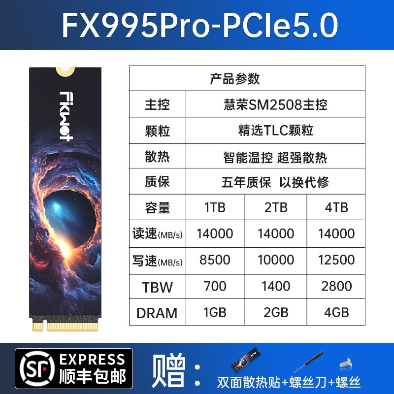 FIKWOT斐扩FX995Pro固态硬盘1TB高速版本,采用PCIe5.0接口,读取速度高达14000MB/s,带来疾速数据传输体验,专为台式电脑打造,性能稳定,响应迅速,不论是大型游戏、视频剪辑还是日常办公都能轻松应对,提升整体系统运行效率,现在在天猫商城参与百亿补贴促销活动,原价999元的商品,使用优惠券后直降100元,叠加补贴后仅需649元即可到手,性价比极高,喜欢的朋友不容错过。