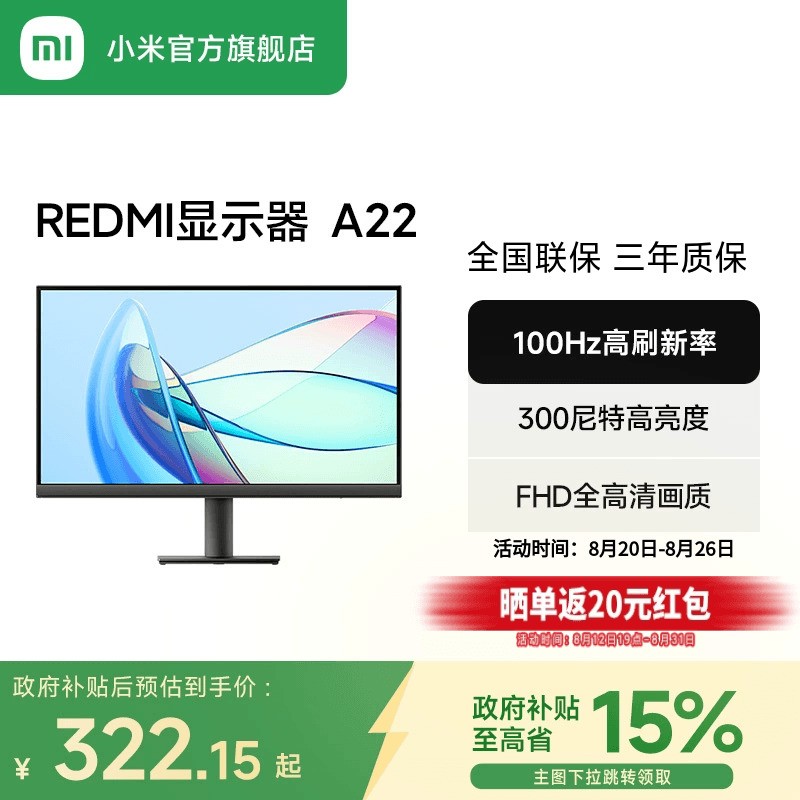 小米Xiaomi MI REDMI 21.45英寸显示器,采用高刷新率100Hz,带来流畅顺滑的画面体验,无论是办公还是娱乐都能轻松应对。显示器支持8Bit色深呈现,色彩过渡更细腻自然,搭配300nits高亮度与全高清微边框设计,视觉观感更沉浸,空间利用更高效。同时配备低蓝光护眼技术,有效减少长时间使用带来的眼睛疲劳。