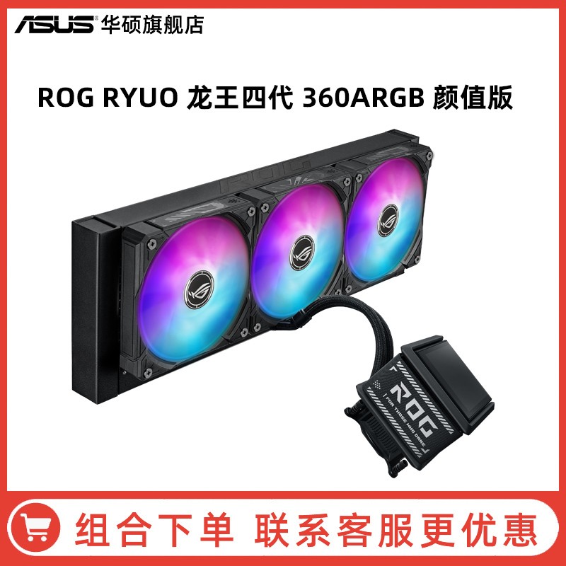 华硕ASUS ROG RYUO龙王4代曲面屏360ARGB台机电脑一体式CPU水冷散热器,这是一款性能卓越的散热器。它有着独特的曲面屏设计,360ARGB更是带来酷炫的视觉效果。颜色分类为ROG RYUO龙王四代360ARGB颜值版,无论是颜值还是散热功能都相当出众,很适合对电脑散热要求较高且追求个性化外观的用户。