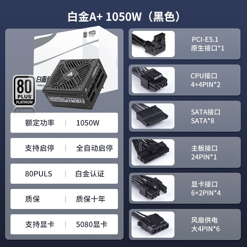 金河田1050W白金牌全模组电脑电源,专为高性能台式机打造,支持ATX3.1标准,拥有原生接口设计,兼容性强,稳定输出,轻松应对5080等主流显卡供电需求。采用全模组结构,便于理线与升级,运行高效静音,保障系统长时间稳定运行。目前在天猫商城限时促销,参加售价立减90元活动,当前到手价仅需659元,降价前售价916元,本次降幅达28%,与上次爆料价相当,品质保障,白金认证,十年质保,只换不修,是装机用户的优选电源。
