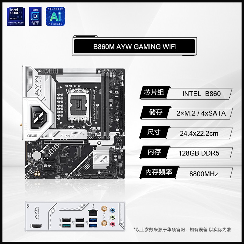 英特尔Ultra 5 245K/KF搭配华硕b860吹雪主板的cpu套装来啦!主板芯片组为其他/other,套餐内无内存,套餐类型为Ultra 5 245KF,颜色分类是华硕B860M AYW GAMING WIFI。现在天猫商城此商品参加百亿补贴活动,补贴价2519元,还能使用国家补贴享受9.5折起优惠,直接减去125.95元,最终到手价仅需2393.05元/件。