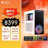 惠普暗影精灵11台式电脑游戏主机震撼来袭,搭载AMD锐龙Ultra5 225F处理器与NVIDIA GeForce RTX5060Ti 8GB独立显卡,性能强劲,轻松驾驭主流3A大作与多任务处理;配备32GB DDR5高速内存和1TB大容量SSD固态硬盘,带来流畅的系统响应与充足的存储空间,开机秒进桌面,游戏秒速加载。外观延续暗影精灵系列酷炫设计,散热高效,灯效炫丽,打造沉浸式电竞体验。