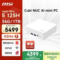 微星Cubi NUC AI mini迷你主机(Ultra5 125H 24G 1T 双2.5G网口 WiFi6E)是一款适合商务办公的台式电脑,外观为白色。它具备24G内存和1T大容量存储,还配备双2.5G网口与WiFi6E,能满足高效办公需求。