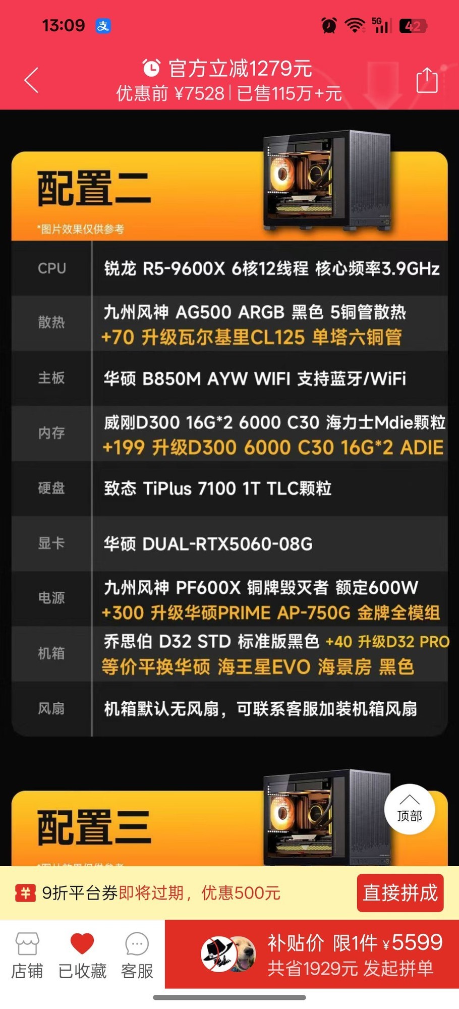 该主机原价6249元,现在下单1件,购买百亿补贴V3会员还能领取500元优惠,实付低至5849元,喜欢玩游戏的朋友别错过!