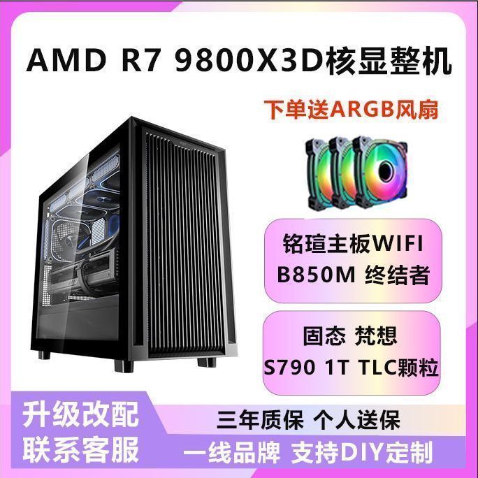AMD锐龙R7 9800X3D准系统DIY组装游戏电竞台式机电脑主机震撼来袭,搭载最新旗舰级处理器AMD锐龙R7 9800X3D,专为高性能游戏和多任务处理打造,带来极致流畅的电竞体验。这款主机采用高端主板与优质散热设计,支持高速内存和大容量扩展,无论是3A大作还是专业创作都能轻松应对。