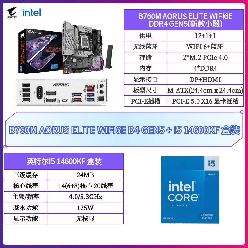 拼多多百亿补贴活动来袭!技嘉 B760M AORUS 小雕 DDR4搭I5 14600KF盒装板U套装WIFI6E参与活动。该套装中的技嘉 B760M AORUS 小雕 DDR4主板品质出色,能为电脑稳定运行提供有力保障,搭配I5 14600KF盒装处理器,性能强劲,可满足多种使用需求,还具备WIFI6E功能,网络连接更稳定、速度更快。