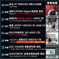 AOC AMD锐龙R7 9800X3D/RTX5070Ti/5080/5090显卡 台式组装电脑主机电竞游戏直播设计AI绘图DIY整机 配三:9800X3D丨5070Ti丨16G丨1T