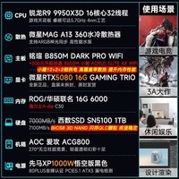 AOC爱攻 AMD锐龙R9 9950x3d/5070/Ti/5080/5090组装电脑主机台式机 直播游戏电竞 AI设计剪辑渲染整机 配五:9950X3D丨RTX5080丨16G+1T