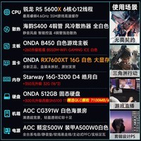 AOC 锐龙R5 5600X/R7 5700X/7600XT/7650GRE/RTX 5060 白色海景房台式组装电脑主机游戏直播设计整机 一:5600X丨7600XT丨16G+512G