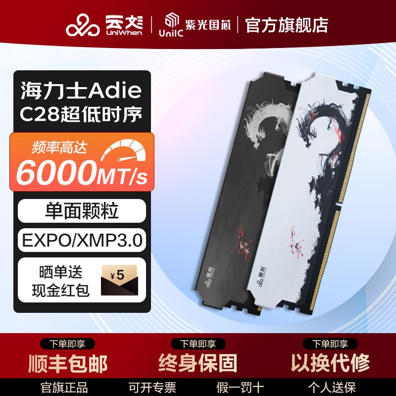 云彣UniWhen紫光国芯32G套条(16Gx2)内存条值得关注!它是DDR5 6000 C28台式机超频马甲条,采用海力士adie。现在拼多多有活动,这款内存条目前活动售价1440元,下单1件,实付低至1399元,性价比超高,有需求的别错过。