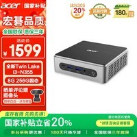 宏碁非凡GO 20%迷你主机台式机电脑,搭载英特尔全新Twin Lake i3 - N355处理器,拥有8G运行内存与256G SSD,具备mini高性能的特点。