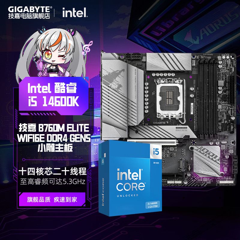 技嘉英特尔i5 14600K盒装搭配技嘉B760M小雕AX D4主板的全新台式机套装现正热卖,搭载第14代酷睿i5-14600K处理器,性能强劲,轻松应对游戏、设计与多任务处理,配合技嘉B760M小雕AX主板,支持DDR4内存,稳定高效,内置Wi-Fi 6无线网络,扩展性强,散热表现优异。
