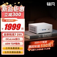 铭凡 X1 Lite 255迷你主机搭载AMD锐龙7 255处理器性能强劲散热高效体积小巧适合办公、影音娱乐及轻度游戏使用支持多屏输出扩展性强准系统设计方便用户自主加装内存与硬盘满足个性化需求京东现售价2299元参与满1390元减300元优惠活动下单1件实付仅1999元性价比出众到手价仅1999元是打造高效桌面系统的理想选择