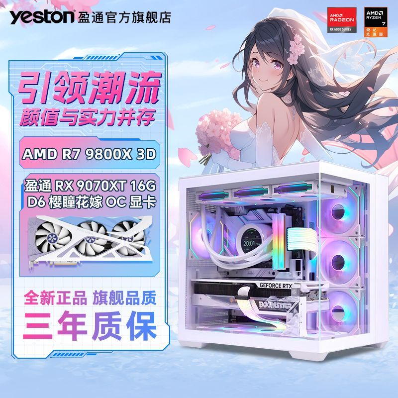 盈通7500F/9600X/7800X3D/RX9070XT樱瞳电竞游戏直播剪辑主机电脑震撼来袭,专为高性能电竞、游戏直播与专业剪辑打造,搭载全新7800X3D处理器与RX9070XT高端显卡,运行流畅不卡顿,轻松应对3A大作、4K视频剪辑及高强度多任务处理,配备高效散热系统与炫酷樱瞳灯效,颜值与实力并存。