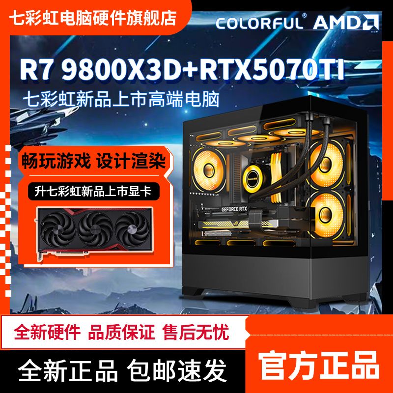 七彩虹COLORFUL R7 9800X3D搭配RTX5070TI 16G显卡游戏主机组装电脑台式机整机现已登陆拼多多百亿补贴专场,性能强悍专为高端游戏体验打造,R7 9800X3D处理器带来卓越多线程处理能力,配合顶级RTX5070TI 16GB显卡轻松应对3A大作和高负载创作任务,流畅运行各类大型游戏与专业软件,整机配置稳定高效散热出色,外观炫酷适合电竞玩家和高性能需求用户,原价10998元现参加百亿补贴活动到手价仅需10498元,性价比出众机会难得,喜欢的朋友抓紧入手不容错过。