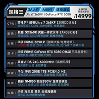 华硕ROG全家桶Ultra7 265KF/RTX5080显卡黑神话悟空电竞游戏台式组装电脑AI太阳神主机整机DIY组装机 265KF+RTX5080丨配置三