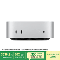 Apple 苹果 AI电脑/Mac mini M4银色主机搭载强大的M4芯片配备10核中央处理器和10核图形处理器性能强劲响应迅速无论是日常办公、创意设计还是视频剪辑都能轻松应对内置16GB统一内存和256GB固态硬盘带来流畅的多任务处理体验和充足的存储空间小巧机身节省空间同时接口丰富支持多种外接设备满足多样化使用需求银色外观简约大气完美融入各类工作与生活环境现京东活动售价4424元部分地区享20%补贴立减884.8元下单即降实付仅需3539.2元更有教育优惠加持到手价更实惠是学生和教育工作者的理想之选数量有限抓紧入手