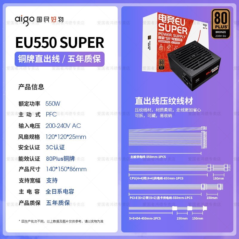 爱国者电源EP550/650W白牌全模组及EU750W铜牌直出两款高性能台式主机电源强势促销,稳定输出高效转换,助力电脑稳定运行,全模组设计布线更整洁,兼容各类主流主板与高端显卡,散热强寿命长,现天猫精选活动售价279元,参与立减100元优惠活动,下单即享超值到手价179元,原价279直降百元,性价比爆棚,库存有限,抢完即止,是装机升级的优选之选。