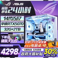 华硕全家桶英特尔酷睿14代i5/i7台式电脑游戏主机震撼来袭,搭载高性能处理器与强劲显卡配置,配备RTX 5060Ti/5070独立显卡,无论是大型3A游戏还是多任务设计办公都能流畅运行,整机散热高效运行稳定,外观炫酷兼具RGB灯效,满足玩家对性能与颜值的双重追求。