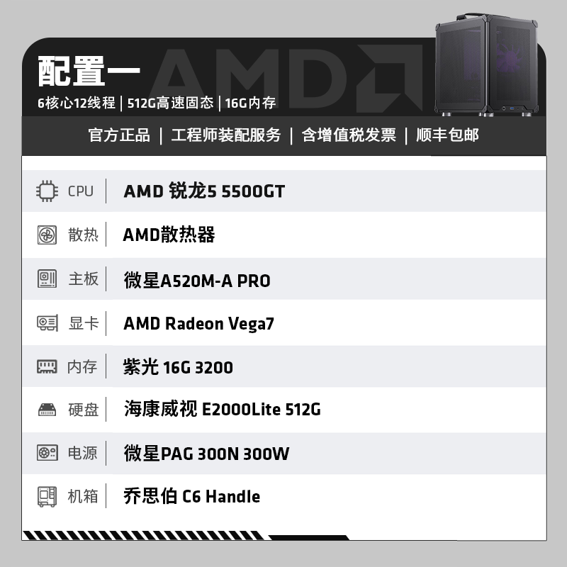 AMD锐龙R5 5500GT搭配RTX5060显卡与7650GRE显存的高性能ITX迷你主机,体积小巧却动力十足,专为吃鸡等主流3A游戏优化,支持4K高清输出与高帧率畅玩,DIY组装便捷,整机稳定散热,手提便携设计满足多场景使用需求;目前天猫精选活动售价2998.82元,参与立减30元优惠,下单...