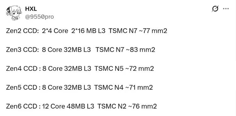 ½üÈÕ£¬AMDÏÂÒ»´úZen 6¼Ü¹¹´¦ÀíÆ÷µÄÏêϸ¹æ¸ñÐÅÏ¢Â½ÐøÅû¶¡£¸ù¾ÝÒµÄÚÈËʿ͸¶£¬Zen 6¼Ü¹¹ÔÚºËÐÄÊýÁ¿ÓëL3»º´æÈÝÁ¿Á½·½ÃæÏà½ÏZen 5¾ùÌáÉýÔ¼°Ù·ÖÖ®ÎåÊ®£¬¶øµ¥¸ö¼ÆËãоƬ£¨CCD£©µÄÃæ»ýÔòά³ÖÔÚÔ¼ÆßÊ®Áùƽ·½ºÁÃ×£¬Óëǰ´ú»ù±¾Ò»Ö¡£ÕâÒ»Éè¼ÆÓÅ»¯µÃÒæÓÚÏȽøÖƳ̹¤ÒÕϾ§Ìå¹ÜÃܶȵÄÏÔÖøÌáÉý¡£´ËÍ⣬ÔÚÏàÍ¬ÖÆ³ÌÌõ¼þÏ£¬ÃæÏòÄÜЧÓÅ»¯µÄZen 6c¼Ü¹¹²úÆ·ÖУ¬ÈýÊ®¶þºË°æ±¾µÄCCDÐ¾Æ¬Ãæ»ýԼΪһ°ÙÎåÊ®Î寽·½ºÁÃס£
