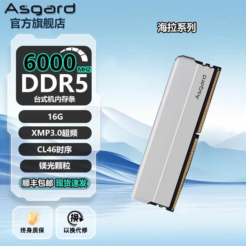 阿斯加特女武神海姆达尔海拉系列DDR5台式机内存条,单条容量16G或24G,频率高达6000MHz,专为高性能PC平台打造,具备稳定低延迟、高效散热与炫酷RGB灯效,兼容主流主板并支持XMP一键超频;目前天猫精选活动售价2349元,参与立减1000元优惠,下单1件实付仅1349元,性价比出众,性能升级一步到位。