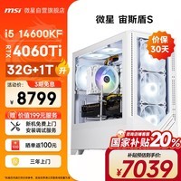 微星 宙斯盾S 游戏台式机,以强劲性能和高颜值设计为玩家带来非凡体验。这款白色主机搭载英特尔酷睿i5-14600KF处理器,搭配NVIDIA RTX 4060Ti 8G显卡,无论是大型游戏还是创意设计都能轻松应对。32GB内存与1TB SSD的组合,让系统运行流畅且存储空间充足。目前京东活动价仅需8799元,原价8899元的基础上叠加优惠立减100元,是近期超值入手的好时机,别错过打造属于你的高性能游戏装备的机会!